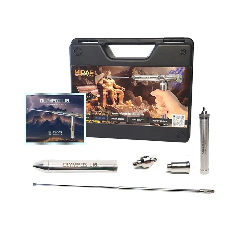 El OLYMPOS LRL es un detector de largo alcance (LRL) basado en radiestesia mejorada: dos varillas antenas diseñadas para captar señales de metales ferrosos y no ferrosos como oro, plata, cobre, bronce, hierro y para detectar cavidades ocultas. Su estructura robusta y precisa permite resistir condiciones exigentes y ofrecer respuestas claras con movimientos mínimos.